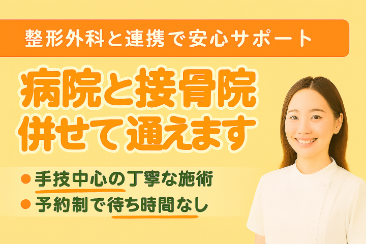医師の診察と接骨院の手技療法を組み合わせる事ができます。